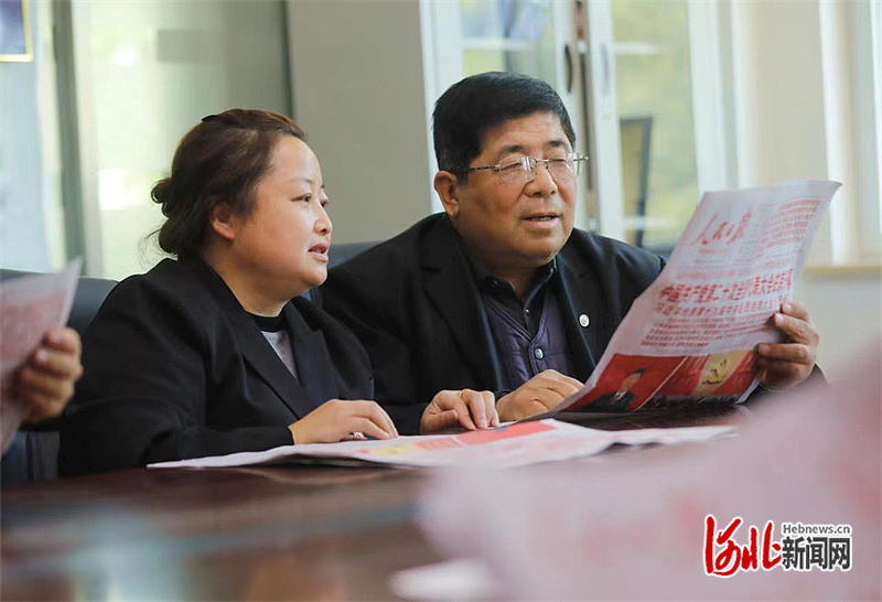 图为在固安县柳泉镇北房上村,党员志愿者为老党员宣传讲解党的二十大报告内容。通讯员吴迪 摄