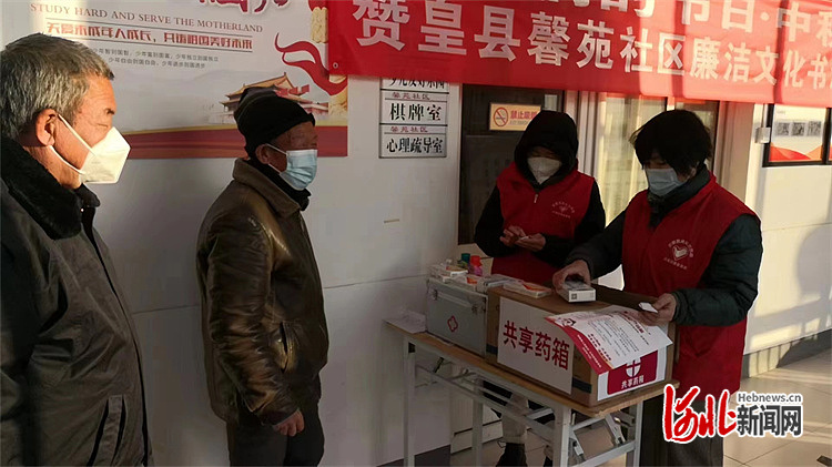 赞皇县在城区10个社区设立“共享药箱”,邻里互助汇聚冬日暖流。