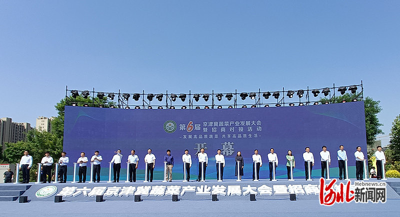 河北新闻网5月18日讯(杜昱辉、李书杰)今天上午,第六届京津冀蔬菜产业发展大会暨招商对接活动在衡水市饶阳县举办。本次活动由河北省农业农村厅、北京市农业农村局、天津市农业农村委、衡水市人民政府、沧州市人民政府主办,衡水市农业农村局、沧州市农业农村局、饶阳县人民政府承办。农业农村部、京津冀三地农业农村部门、天津市商务厅、河北省人力资源和社会保障厅、河北省各地市农业农村职能部门、国家蔬菜工程技术中心、京津冀农产品行业联盟等相关负责同志参加活动,全国大中城市蔬菜投资商、采购商、经销商、电商平台负责人、省内规模化蔬菜生产基地负责人约2300余人到会积极参会并现场对接洽谈。