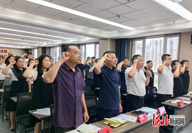 定州市建投集团党委书记、董事长胡尽力领誓,全体党员面向党旗庄严宣誓,铿锵有力的誓词,表达出大家牢记誓言、终生不渝的坚定决心。