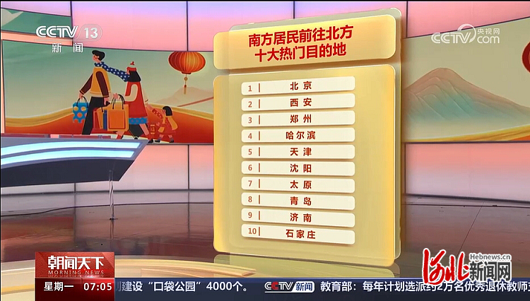 根据央视新闻发布的春运热力图分析,今年春节假期南北双跨趋势越发明显,来自南方城市的居民纷纷踏上前往北方的旅程。数据显示,北京、西安、郑州、哈尔滨、天津、沈阳、太原、青岛、济南和石家庄成了南方居民前往北方的十大热门目的地。