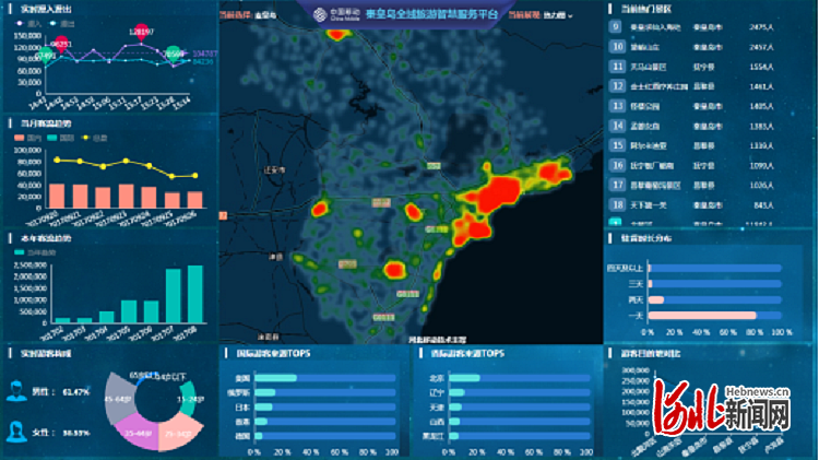 从单日客流量统计到累计游客变化趋势图、从游客来源到交通选择、从游客年龄与性别构成到驻留时长、秦皇岛智慧旅游大数据平台能够实现全面收集。