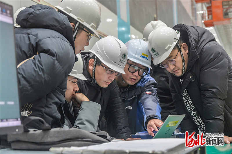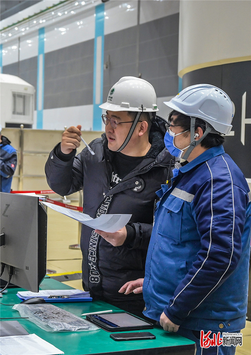 2月5日,陈磊(中)与同事们在12号机组旁忙碌工作。