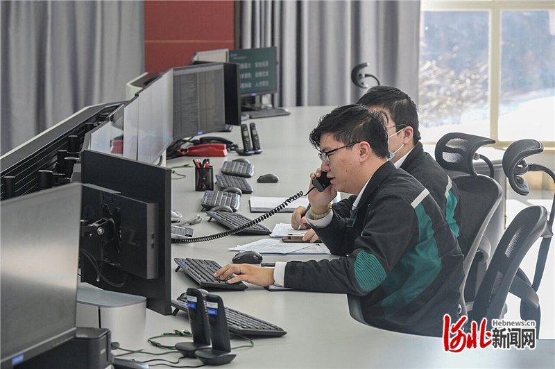 2月5日,工作人员在国网新源河北丰宁抽水蓄能电站中控室值守。