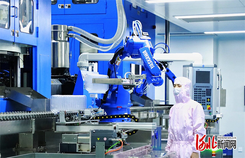 5月10日,石四药数智化直立式软包装输液生产车间,呈现着一幅智能制造新图景。